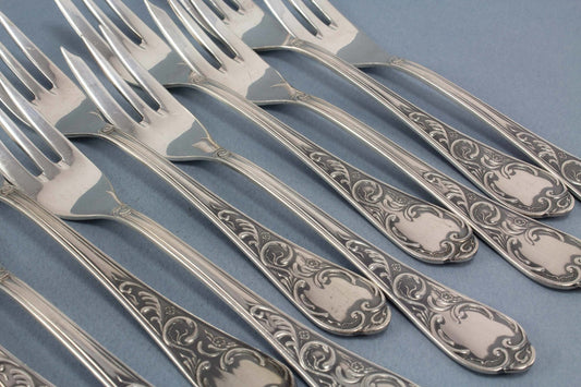 10 versilberte Kuchengabeln, Gabel, Rokoko, Tee Party