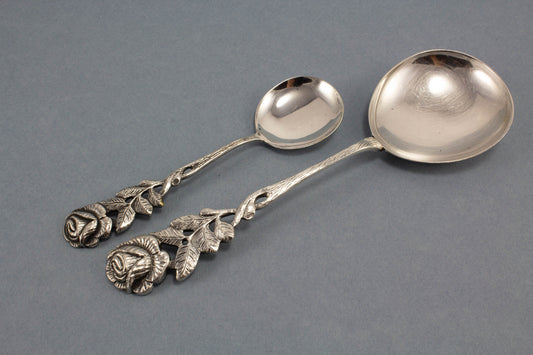 2 Löffel mit der Hildesheimer Rose, Sahnelöffel und Zuckerlöffel