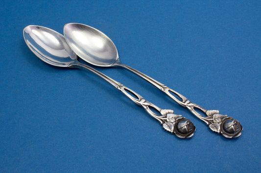 1 antiker Eislöffel mit dem passenden Teelöffel im schönen Jugendstil