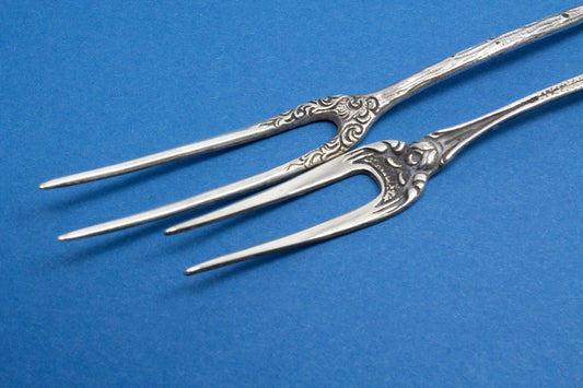 2 schöne Fleischgabeln, Jugendstil-Bestecksatz, WMF 1400, Lilie