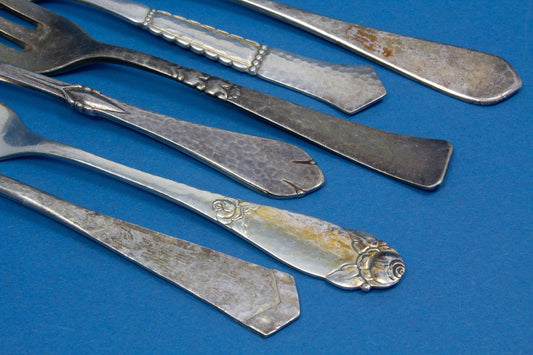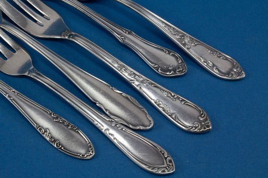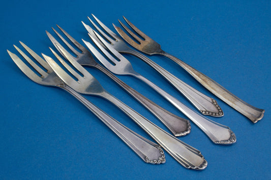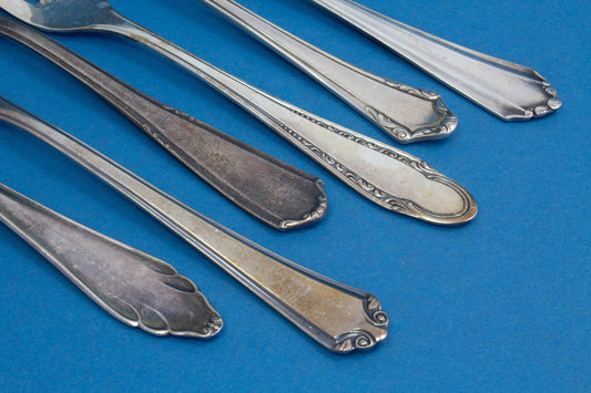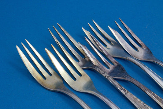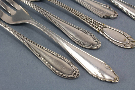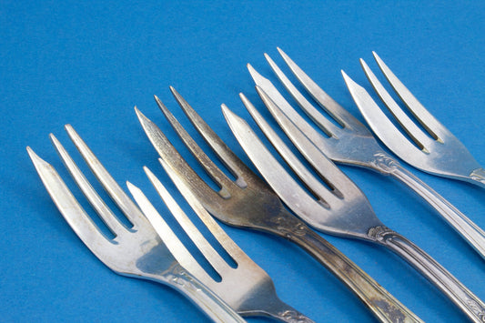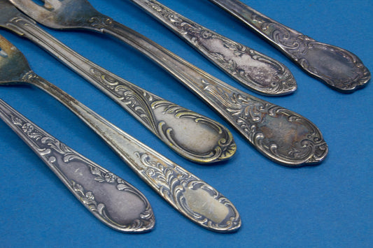 6 versilberte Kuchengabeln, Mix and Match Set, shabby chic