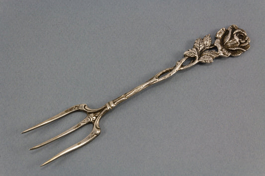 AusverkauftSchöne Brotgabel aus Silber mit Rosenmuster