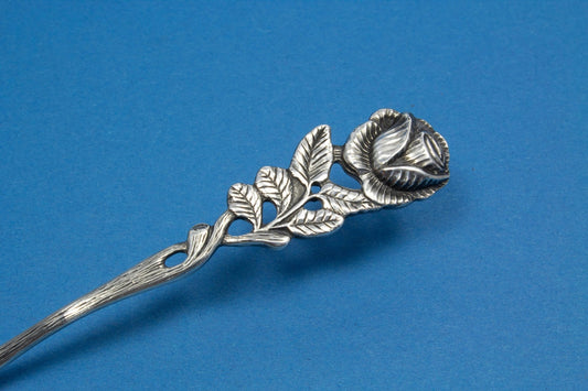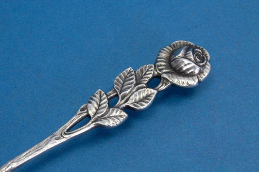 Tortenheber mit Rosendekor, versilberter Gebäckheber, Rosenblatt