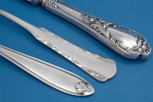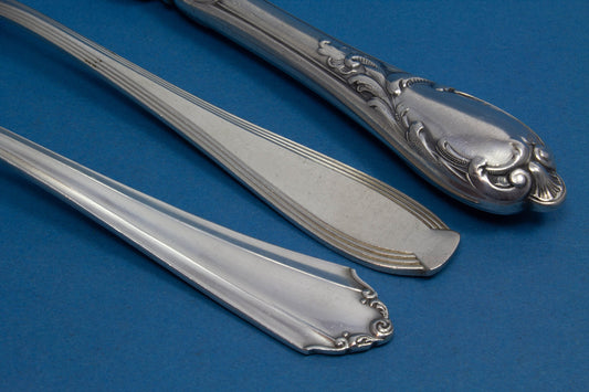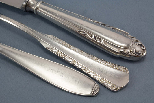 Versilbertes Silberbesteck, Messer, Gabel, Löffel Mix and Match Silberbesteck