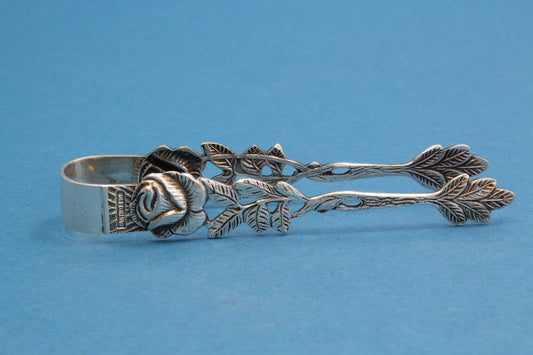 Zuckerzange mit Rosen, 800er, Silber, Silberbesteck,