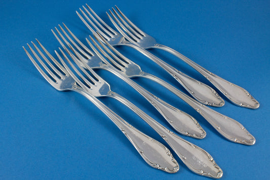 6 Kuchengabeln, WMF 2000 Art Deco, Jugendstil Dekor