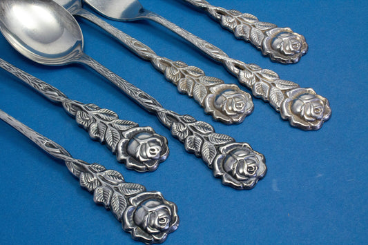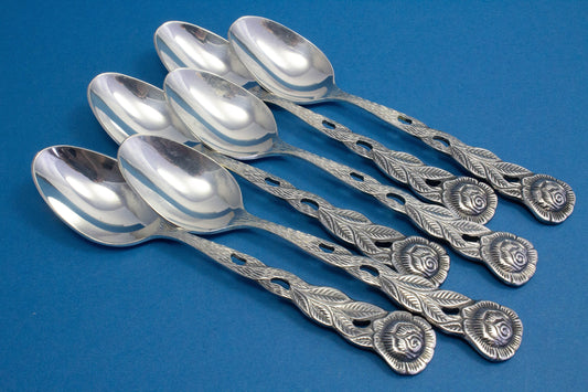 Silver-plated teaspoons with roses, antique Köberlin cutlery