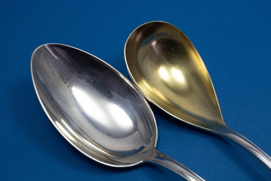 2 serving spoons, large vegetable spoon with matching sauce spoon