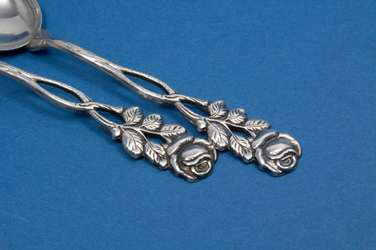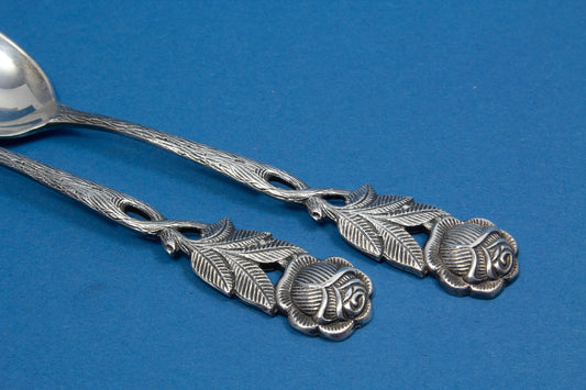 2 beautiful meat forks, cheese skewers, silver plated forks, brunch, WMF roses
