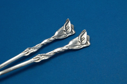 2 beautiful meat forks, skewers, silver-plated forks, brunch, art nouveau