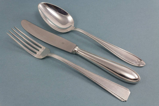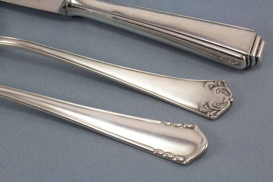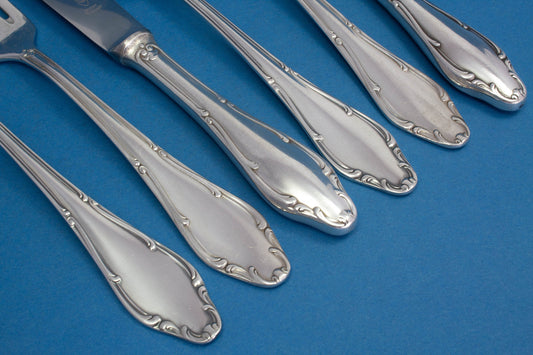 Antique Art Nouveau cutlery for 6 by Lutz and Weiss, 800 silver, spoon, fork, knife