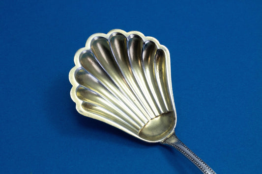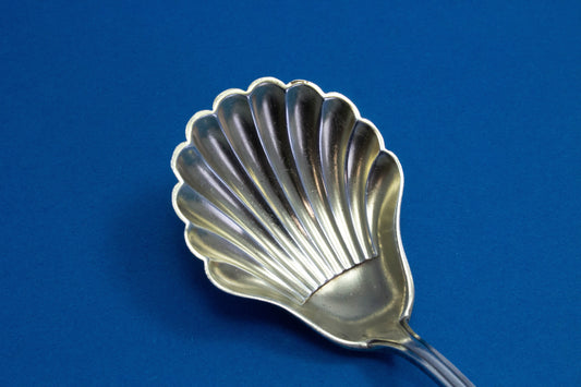 Silver-plated sugar spoon with rococo decorations