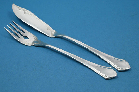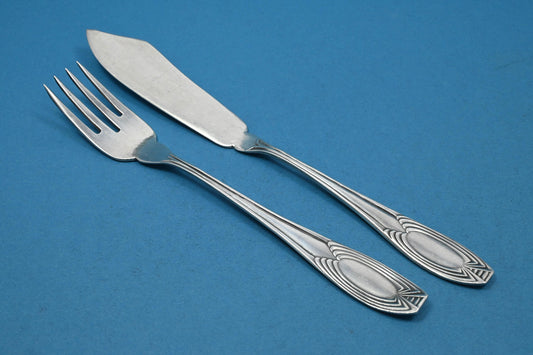 Silver-plated fish cutlery for one person, Art Nouveau cutlery, fish knife, fish fork