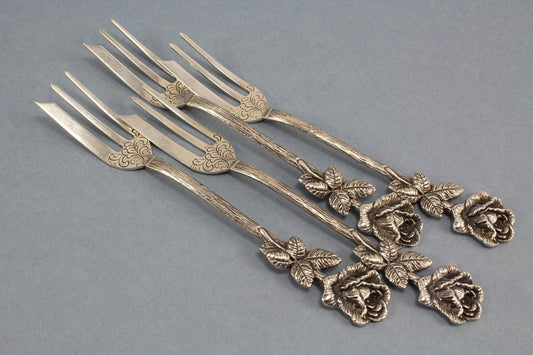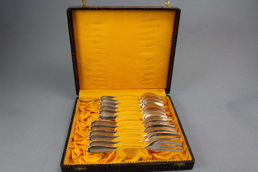 Elegant silver cutlery set for 4 people, 4 mocha spoons and 4 cake forks