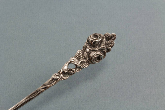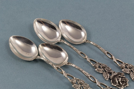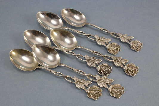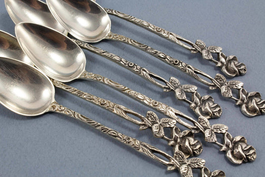 Beautiful silver teaspoons with rose pattern, rose cutlery, 800 silver
