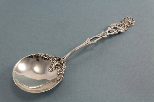 Cream spoon made of silver, spoon Hildesheim rose pattern