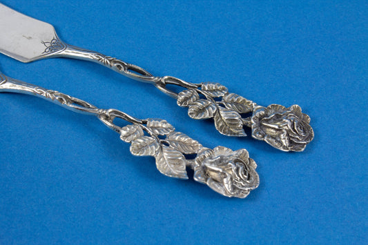 Silver butter knife, cheese knife and skewer Rose cutlery set from Widmann