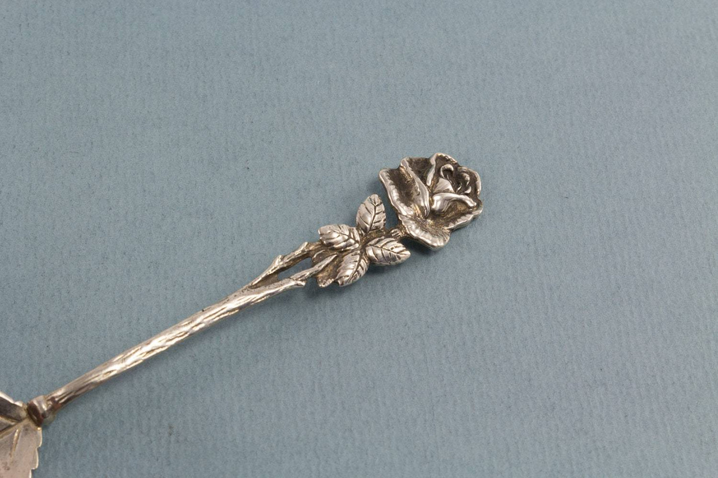 Small sugar spoon, 800 silver, rose cutlery, table silver, Hildesheim rose