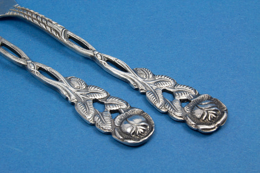 Cuchillo de mantequilla de plata + cuchillo de queso, cuchillo, cubiertos de rosas