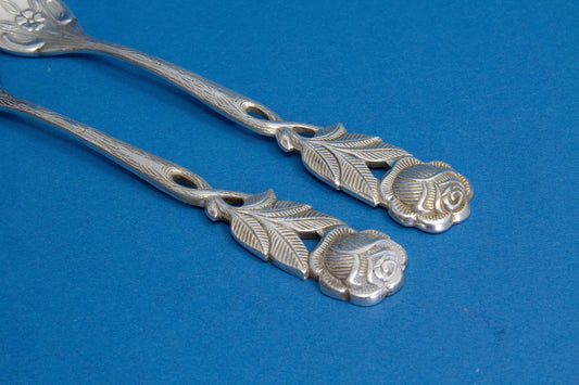 Juego de cubiertos para una persona, cucharita y tenedor de pastel con rosas, cubiertos plateados