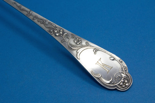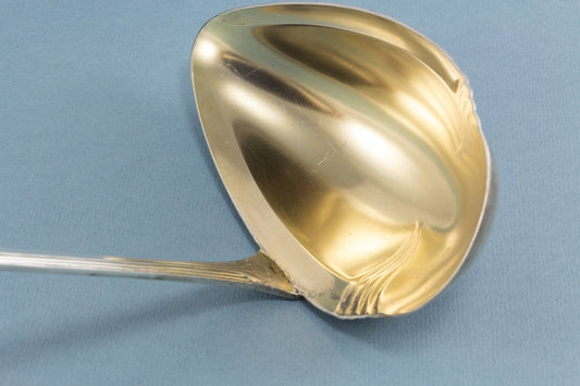 Gran cucharón Art Nouveau antiguo, cucharón de sello, cucharón de ponche, cucharón de sopa, 1910