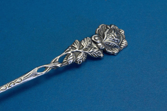 Sahnelöffel, versilberter Vintage-Löffel con Rosen