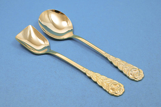 Vergoldeter Sahnelöffel und Zuckerlöffel mit der Hildesheimer Rose