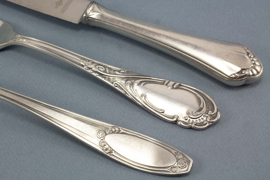 Cubiertos vintage para una persona, cuchillo, tenedor, cuchara