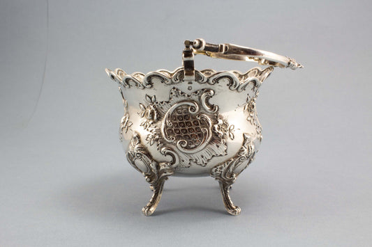 Precioso cuenco con asa de plata de Austria, cuenco de plata antigua, cabeza de Diana