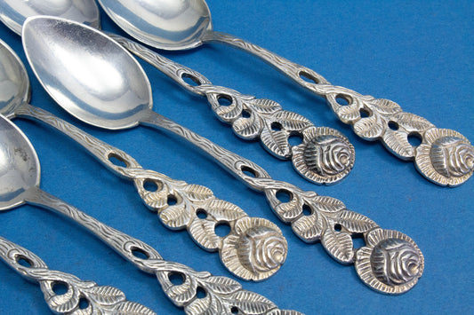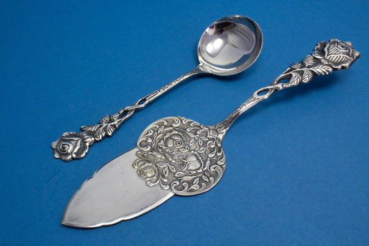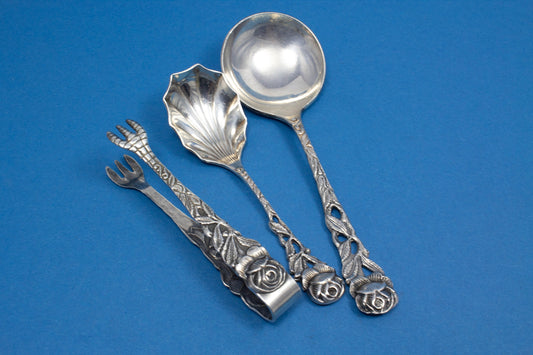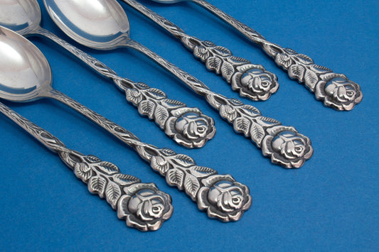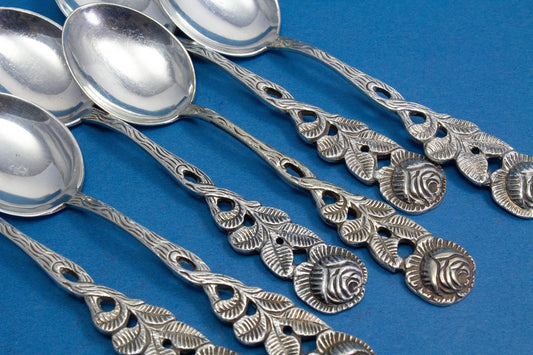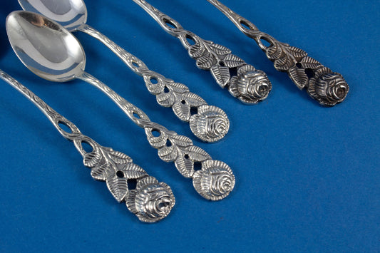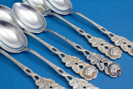 Sahnelöffel, versilberter Vintage-Löffel con Rosen