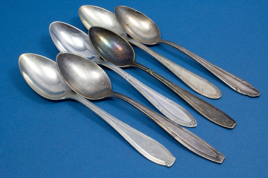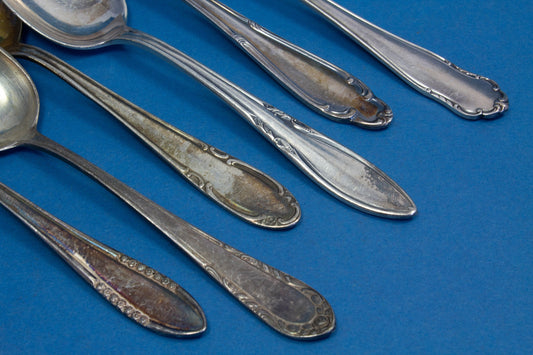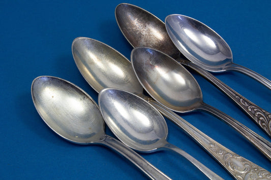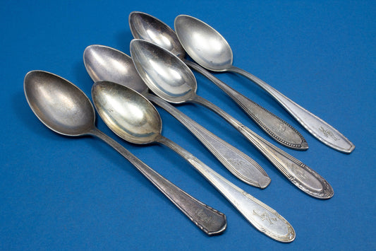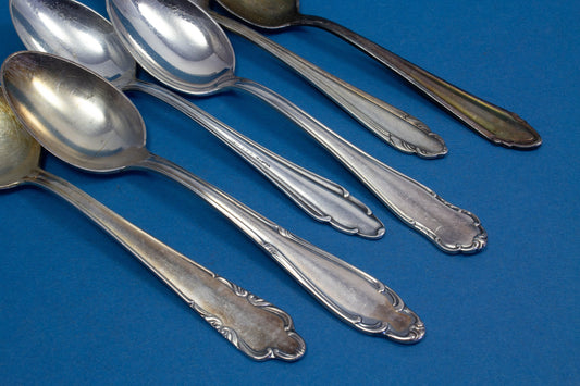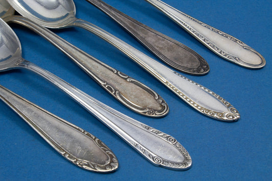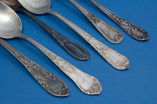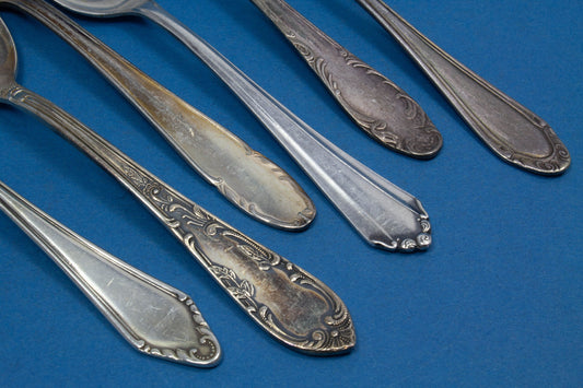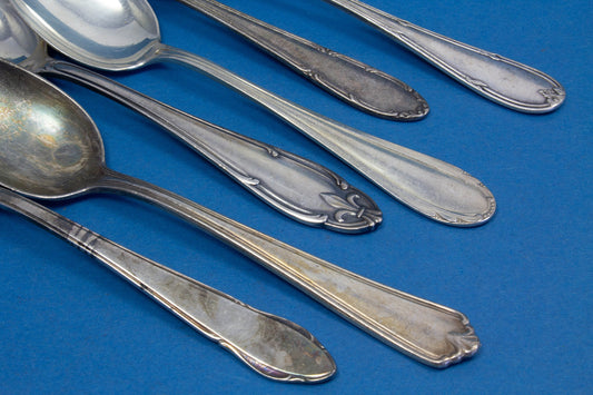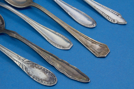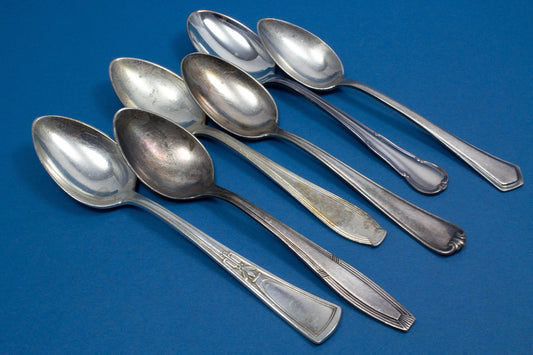 6 cucharaditas bañadas en plata, mezclar y combinar, shabby chic