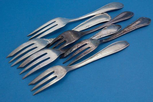 6 tenedores de pastel plateados, mezclar y combinar, shabby chic