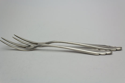Un hermoso tenedor de carne, brochetas de queso, tenedores plateados, brunch, compartimentos WMF 900