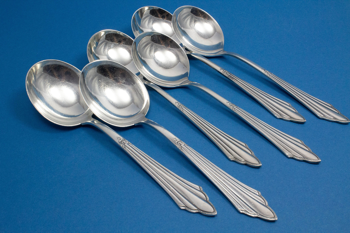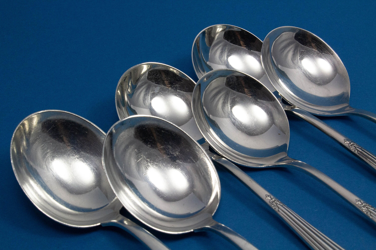 6 cucharas de taza plateadas, cucharas de taza de sopa, compartimentos WMF 900