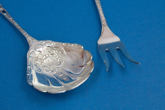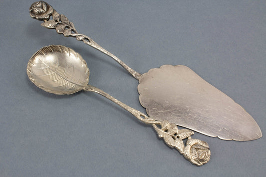 Noble pelle à gâteau sertie de roses, fourchette de service, pince à sucre, cuillère à crème, cuillère à sucre