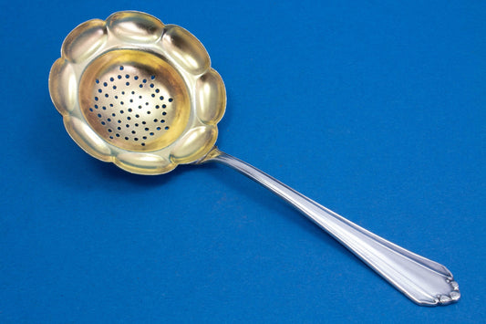 Couverts à thé nobles, passoire à thé argentée avec cuillère à sucre et pince à sucre assortie