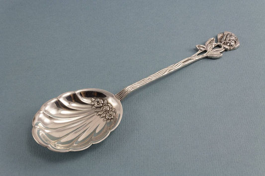 Sahnelöffel mit Rose, versilbertes Vintage Composition