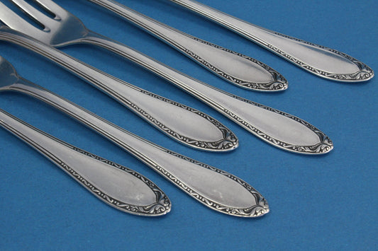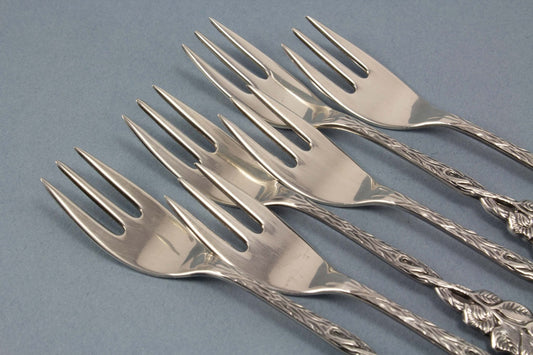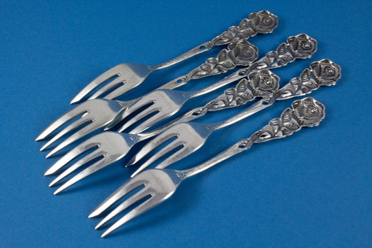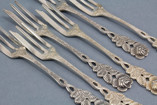 6 fourchettes à gâteau, roses, plaqué argent, fourchettes, vintage