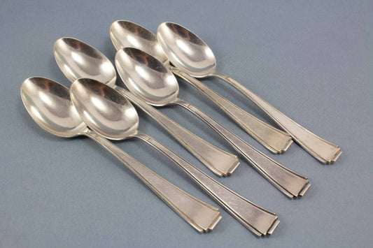 6 fourchettes à gâteaux et 6 cuillères à café, pyramide Art Déco, Art Nouveau