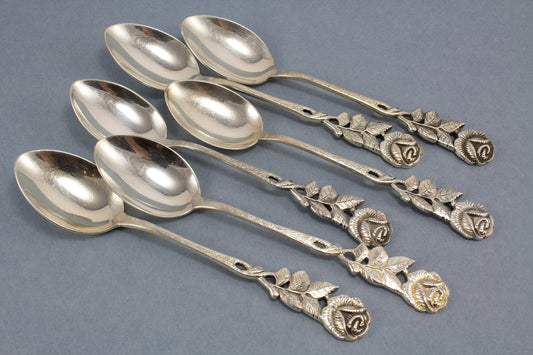 6 fourchettes à gâteau et 6 cuillères à café de roses, plaquées argent