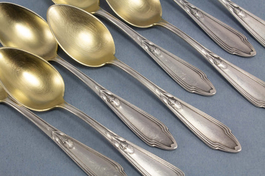 8 rares cuillères à moka de Koch et Bergfeld avec le lys de Brême, cuillères en métal argenté