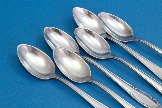 6 versilberte avec Mokkalöf, kleine Rokokolöf, Mix and Match