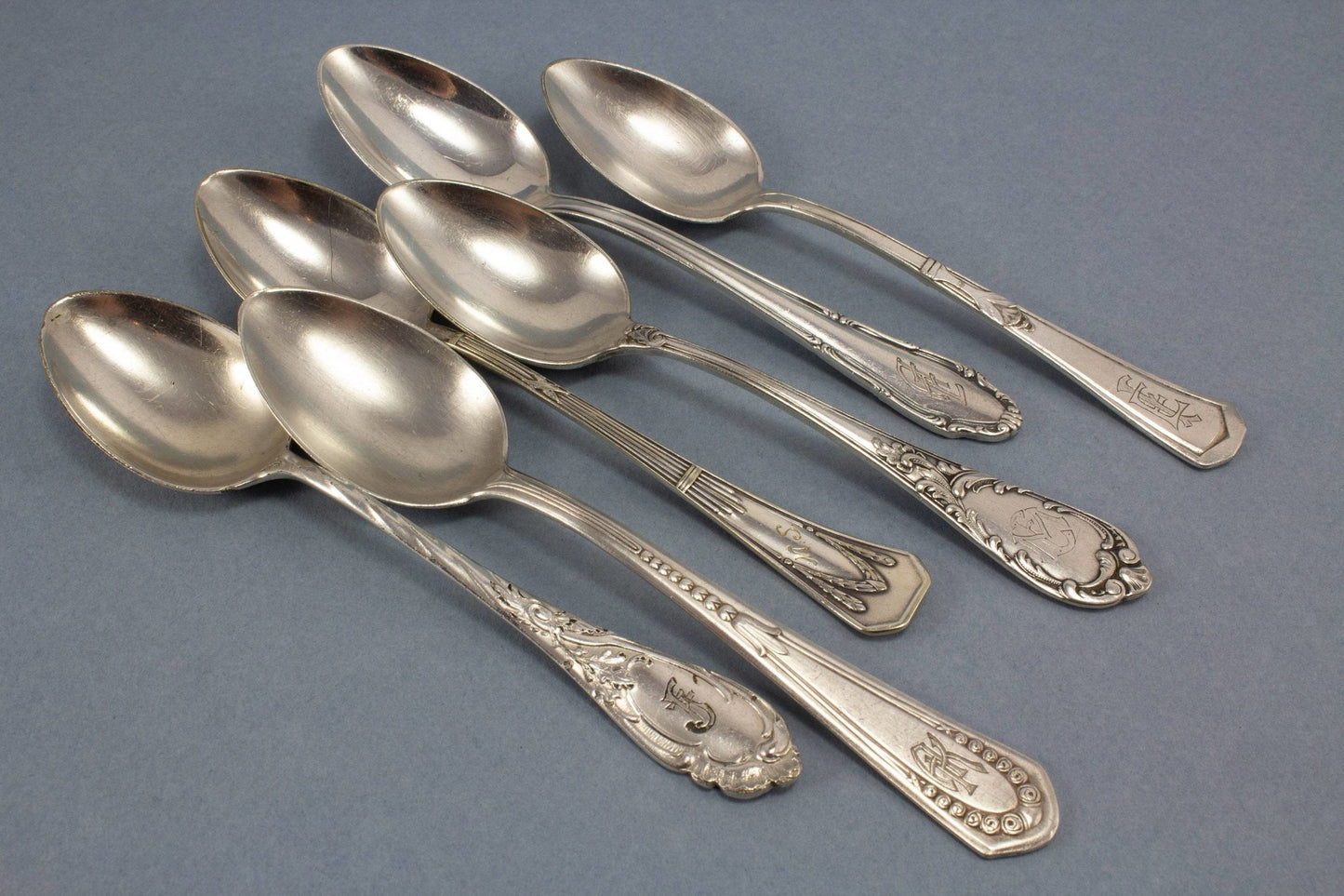 Set dépareillé, 6 cuillères à café, plaqué argent