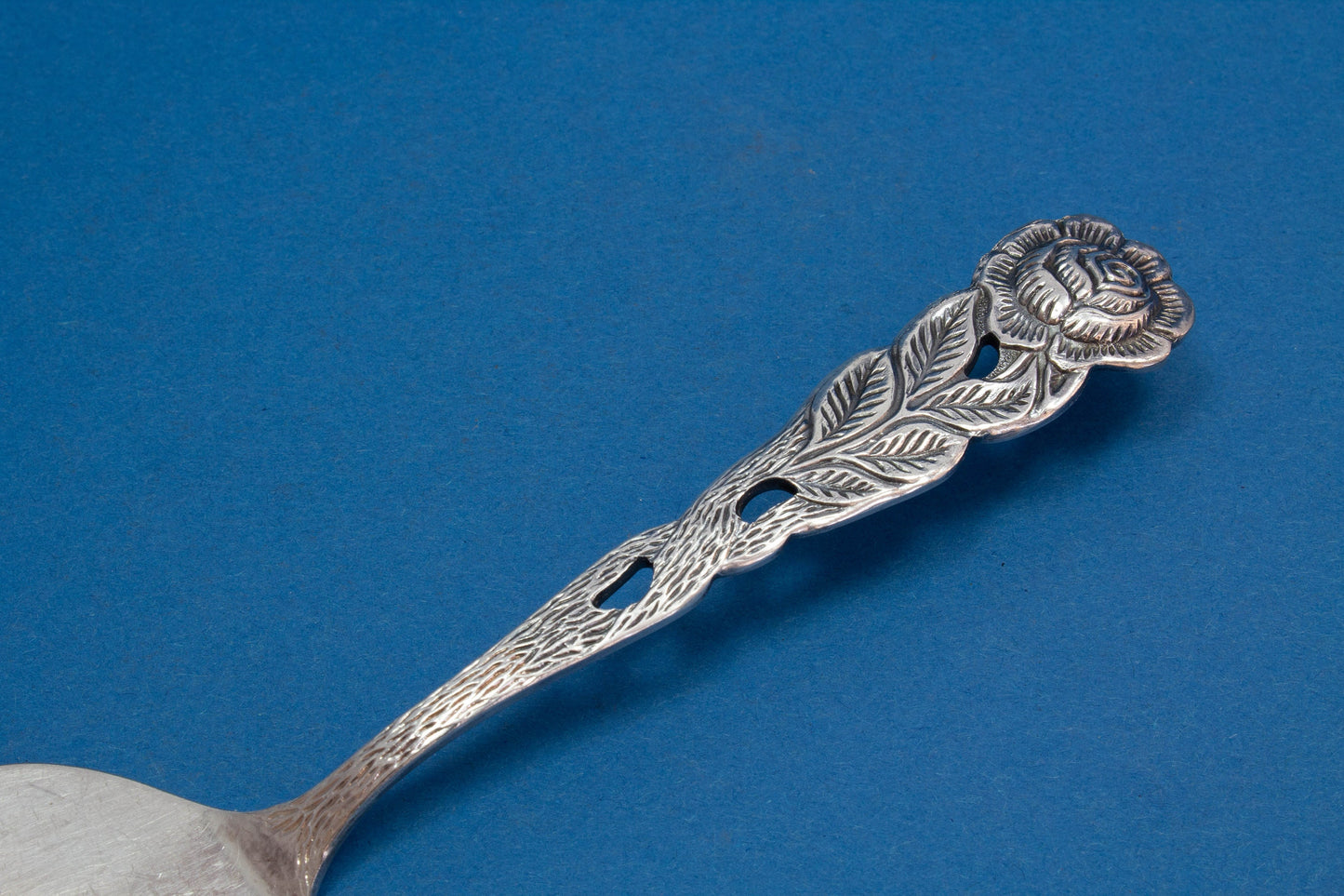 Danke für die schnelle Zusendung nach Ihrem Urlaub.Über die Vorlegeteile freue ich mich sehr,konnte damit das von meinen Großeltern ererbte Silberbesteck vervollständigen.Der Zustand ist 1a. Mit herzlichen Grüßen aus Ulm Michaela May.