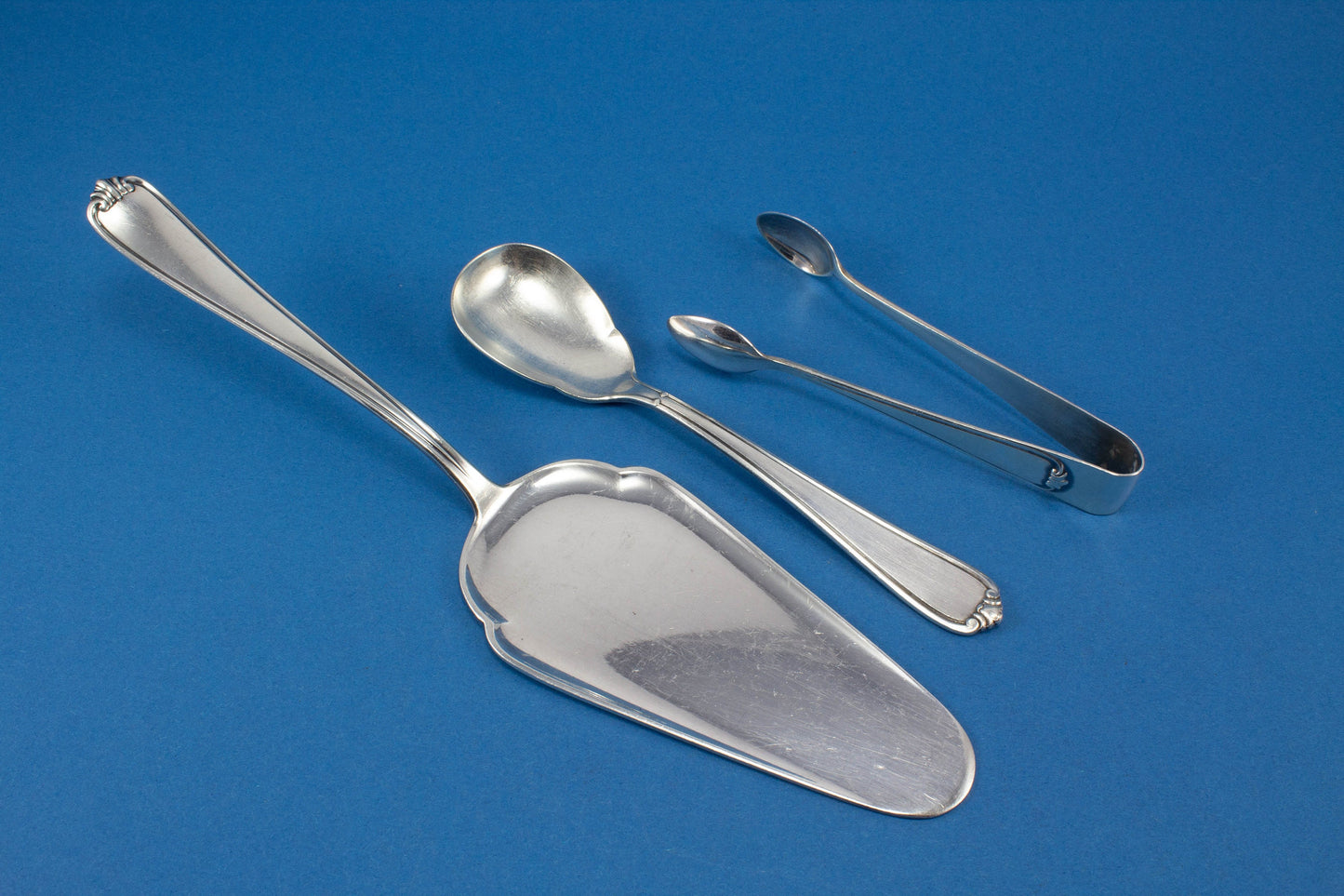 Pelle à tarte en métal argenté Wellner, pince à sucre et cuillère à crème