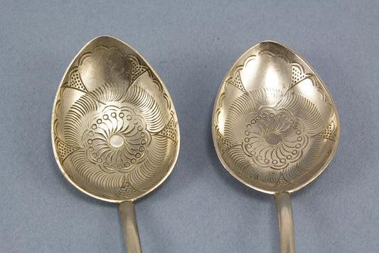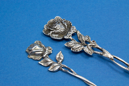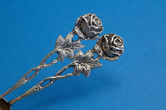 バラの模様が美しいシルバーモカスプーン2本、800シルバー
