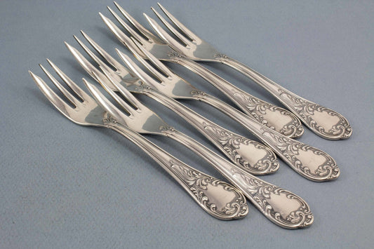 ロココ調の6人用大型カトラリーセット、ケーキサーバー2個、クリームスプーン、シュガートング、ケーキフォーク6個