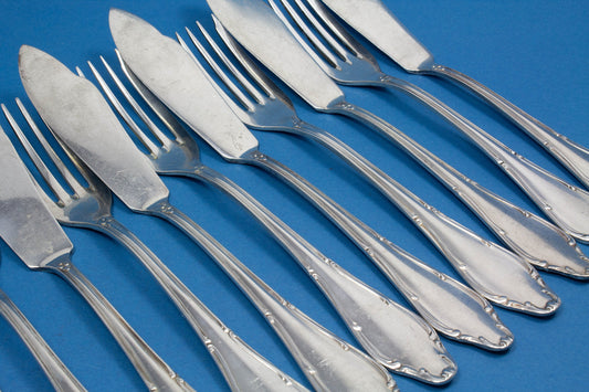 Clarfeld & Springmeyer の銀メッキの魚用カトラリーセット 6 人用
