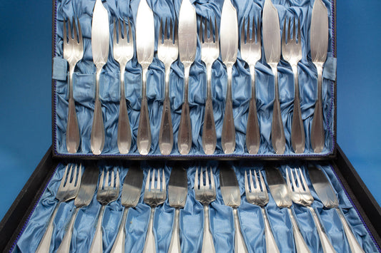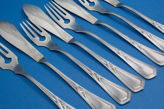 ツヴィリング、J.A.ヘンケルスのアールヌーボー様式の魚用カトラリーセット 12人用