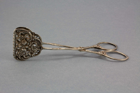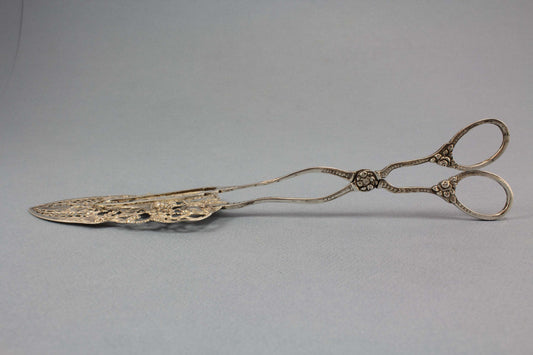 銀製の可憐なペストリートング、美しい装飾が施されたビスケットトング
